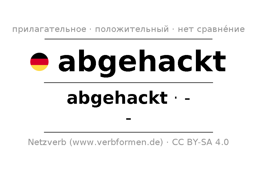 - Множественное число: abgehackte, abgehackter, abgehackten, abgehackte