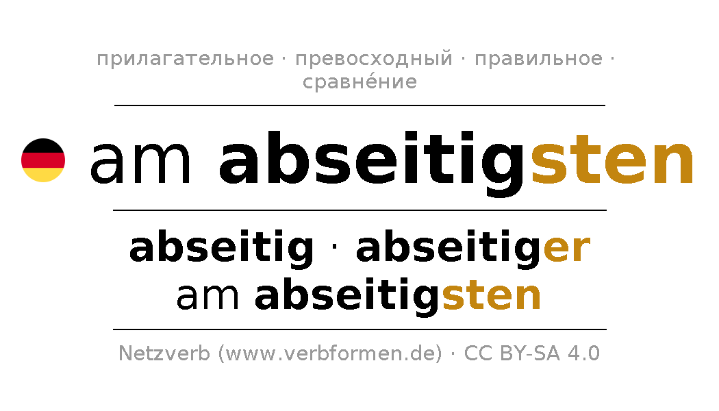 - Mужской род: der abseitigste, des abseitigsten, dem abseitigsten, den abseitigsten