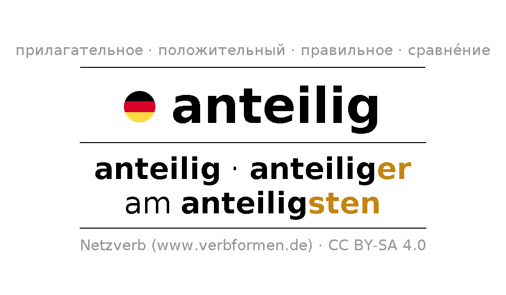 - Женский род: anteilige, anteiliger, anteiliger, anteilige