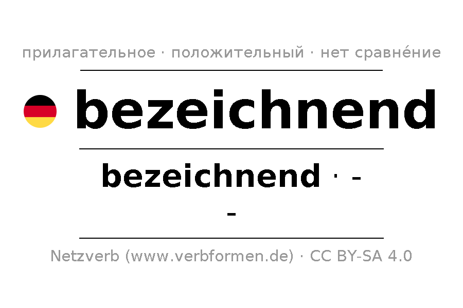 - Множественное число: bezeichnende, bezeichnender, bezeichnenden, bezeichnende