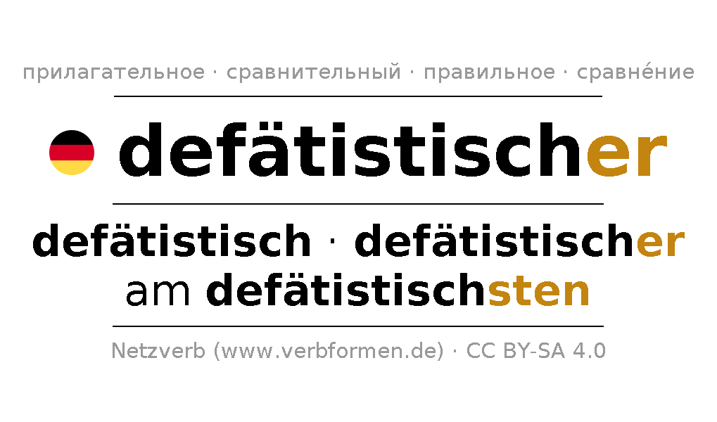 - Множественное число: defätistischere, defätistischerer, defätistischeren, defätistischere