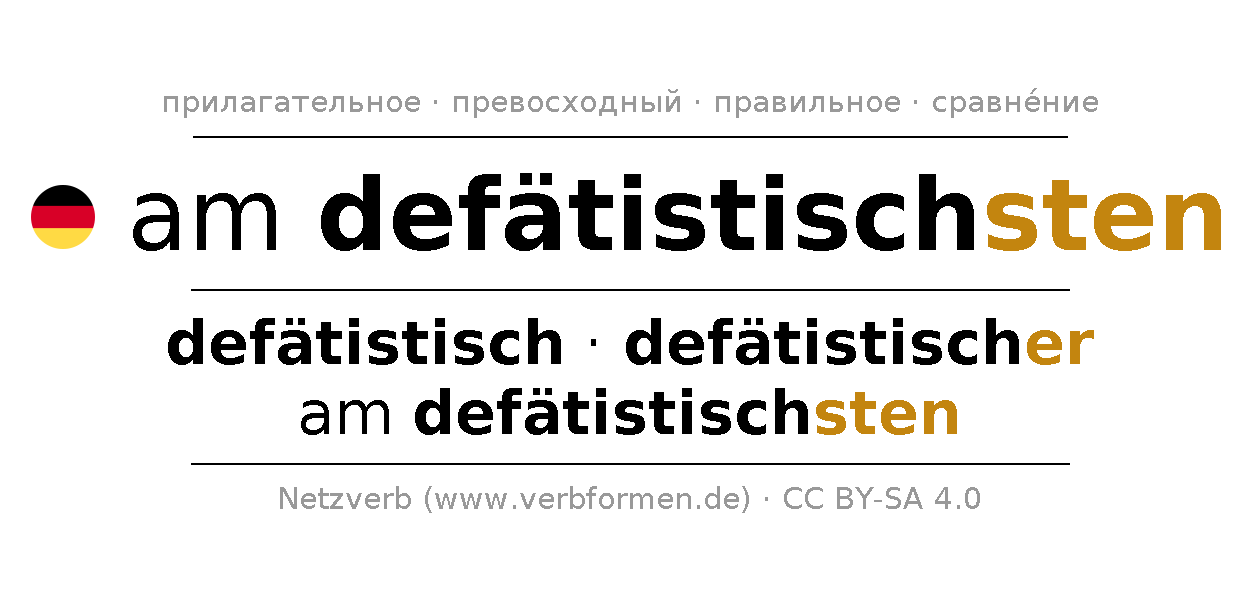 - Mужской род: defätistischster, defätistischsten, defätistischstem, defätistischsten