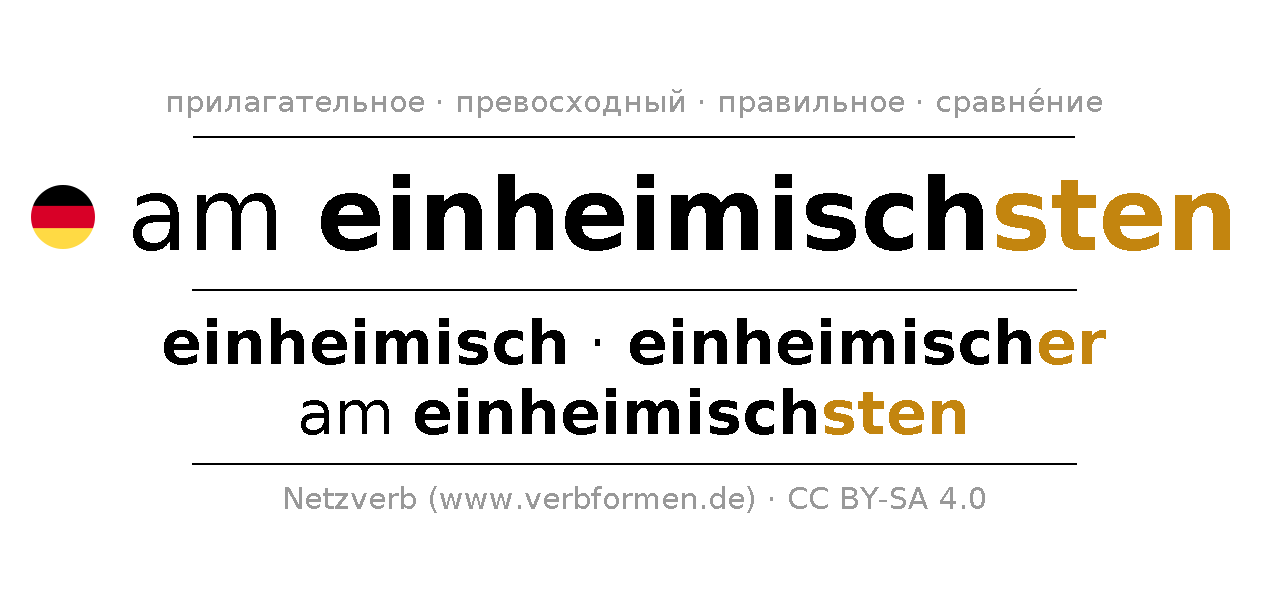 - Mужской род: der einheimischste, des einheimischsten, dem einheimischsten, den einheimischsten