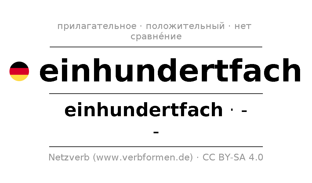 - Множественное число: die einhundertfachen, der einhundertfachen, den einhundertfachen, die einhundertfachen