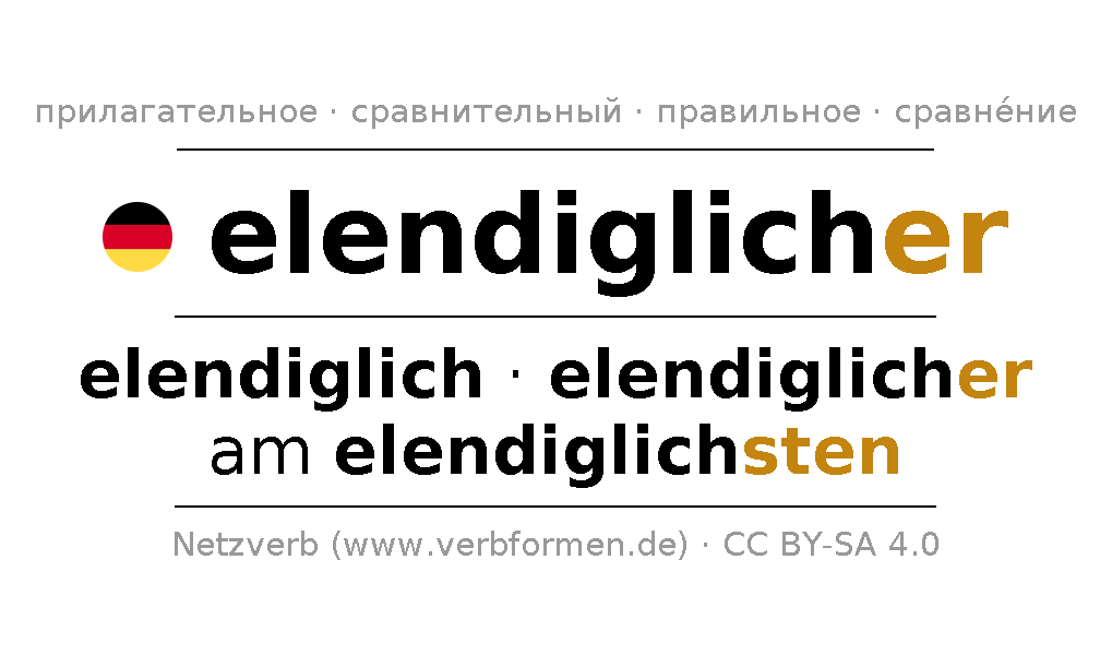 - Mужской род: der elendiglichere, des elendiglicheren, dem elendiglicheren, den elendiglicheren