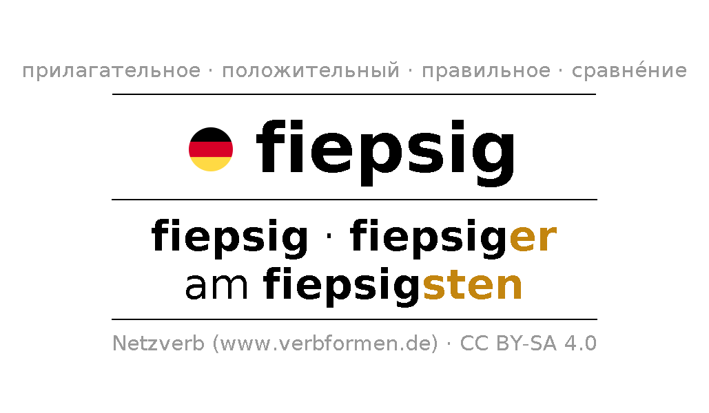 - Множественное число: fiepsige, fiepsiger, fiepsigen, fiepsige