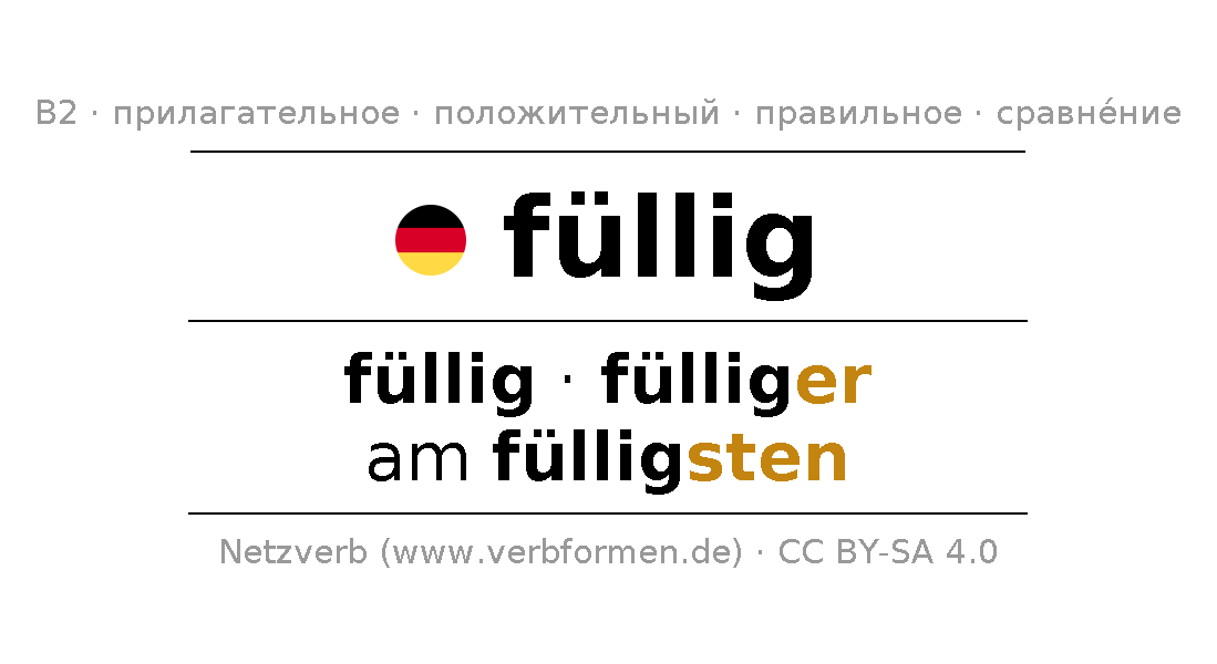 - Множественное число: füllige, fülliger, fülligen, füllige