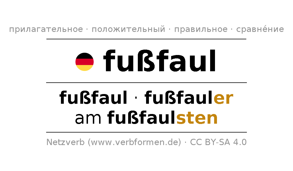 - Множественное число: fußfaule, fußfauler, fußfaulen, fußfaule