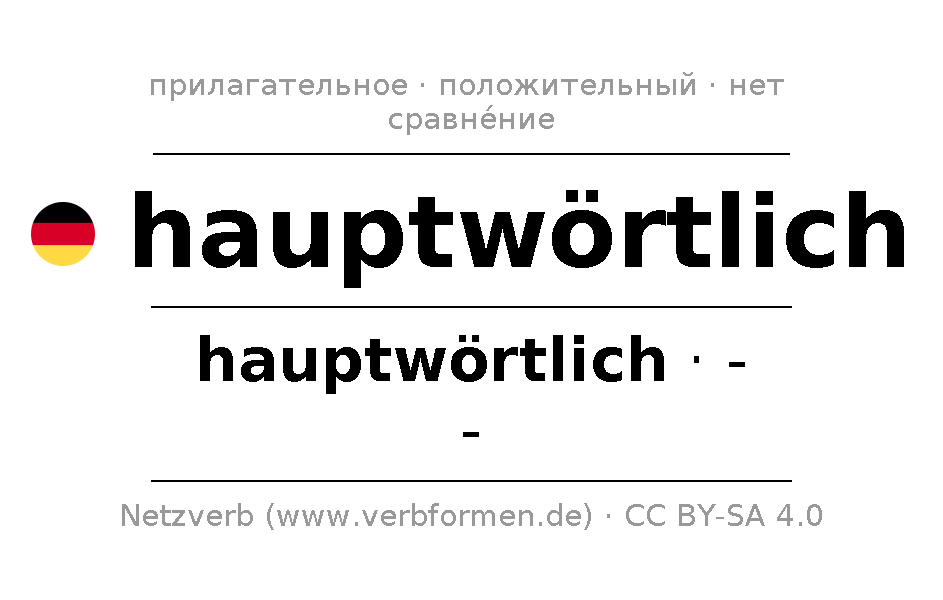 - Множественное число: die hauptwörtlichen, der hauptwörtlichen, den hauptwörtlichen, die hauptwörtlichen