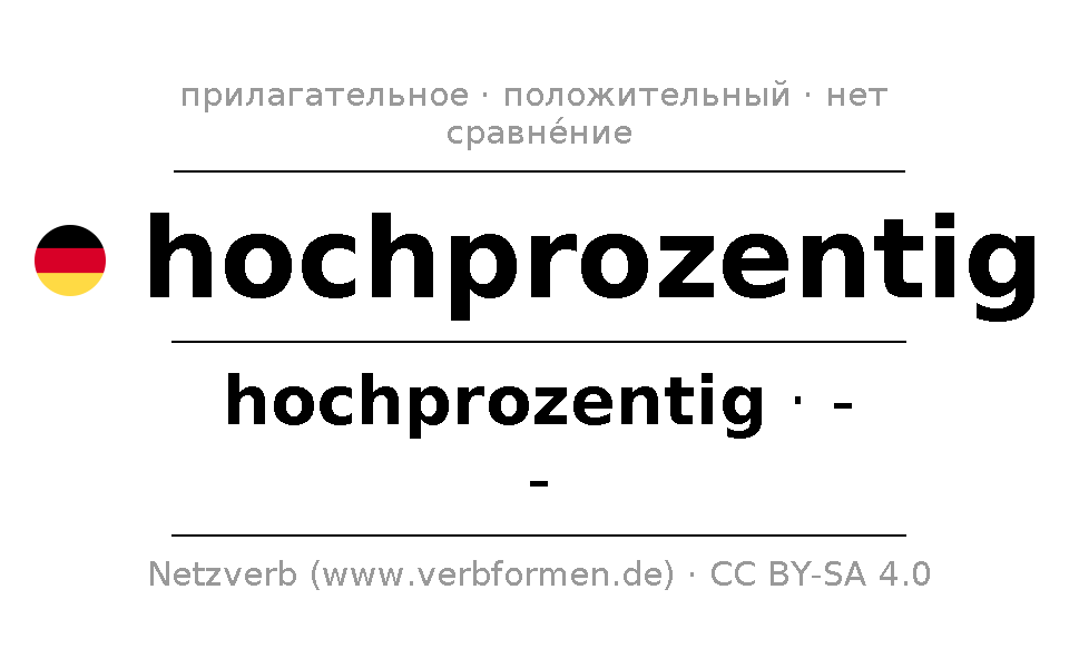 - Множественное число: die hochprozentigen, der hochprozentigen, den hochprozentigen, die hochprozentigen