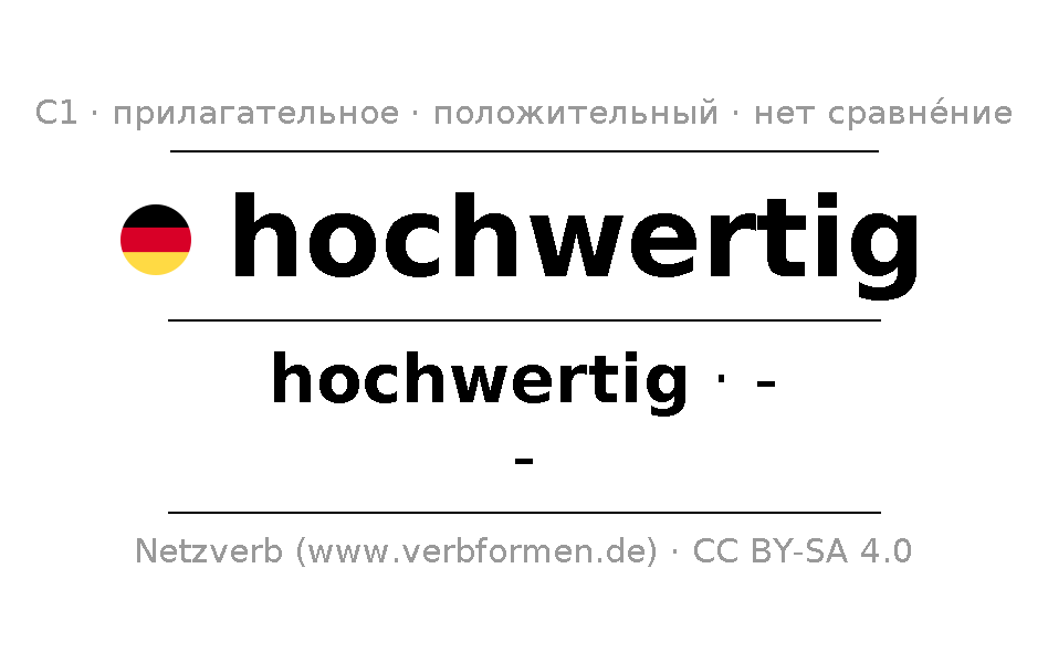 - Множественное число: hochwertige, hochwertiger, hochwertigen, hochwertige