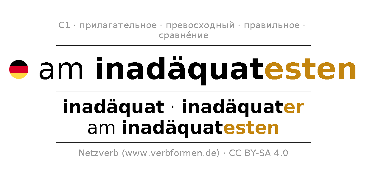 - Множественное число: die inadäquatesten, der inadäquatesten, den inadäquatesten, die inadäquatesten