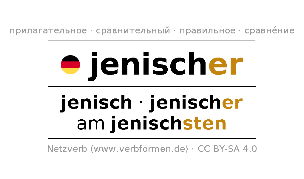 - Множественное число: die jenischeren, der jenischeren, den jenischeren, die jenischeren