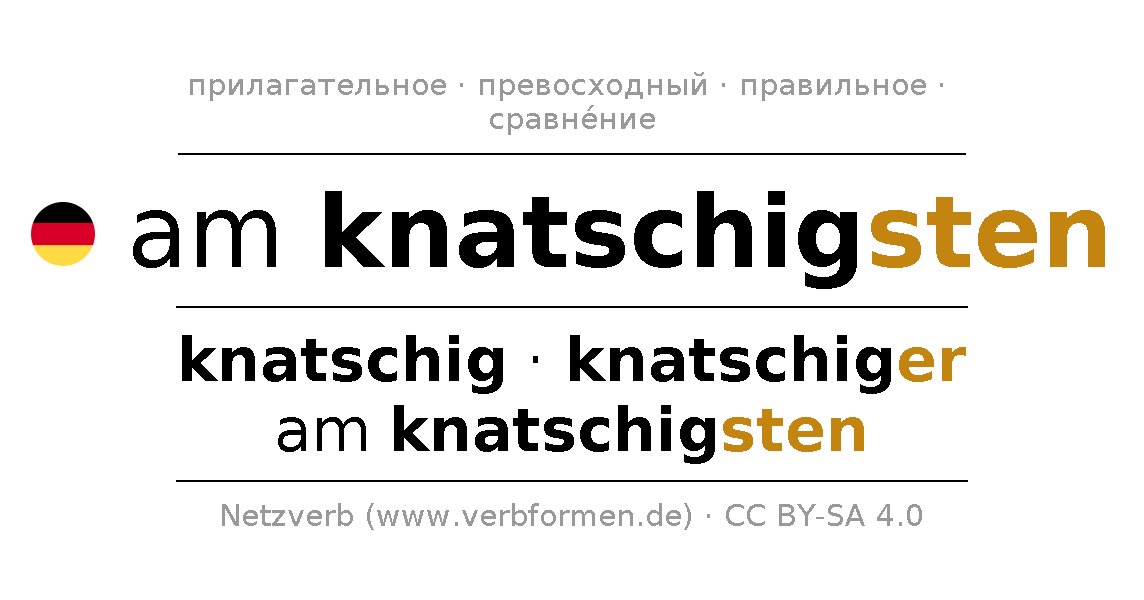 - Множественное число: knatschigste, knatschigster, knatschigsten, knatschigste