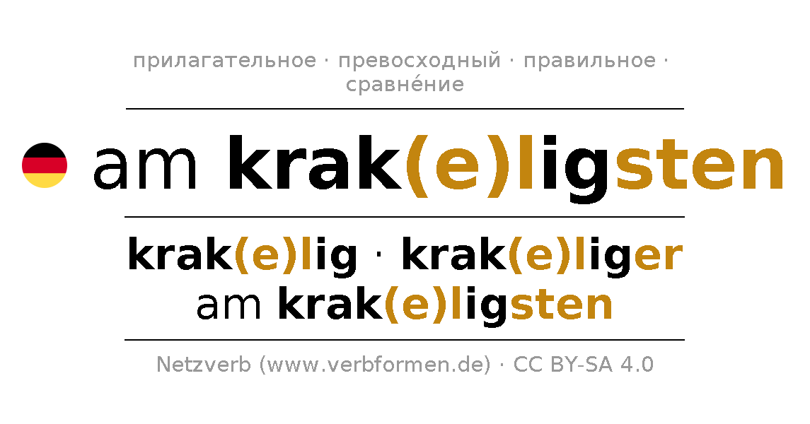 - Множественное число: die krak(e)ligsten, der krak(e)ligsten, den krak(e)ligsten, die krak(e)ligsten