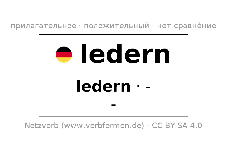 Прилагательное ledern (кожаный, из кожи) склоняется в положительной степени сравнения ledern. Прилагательное не имеет сравнительной и превосходной степеней сравнения. Прилагательное ledern может употребляться как в качестве определения перед существительным (с артиклем и без него, в формах сильного, слабого и смешанного склонений), так и в качестве именной части сказуемого в сочетании с глаголом.Можно не только отразить и сравнить ledern, но и все немецкие прилагательные. Kомментарии ☆