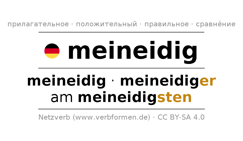 Все формы склонения и степени сравнения прилагательного meineidig во всех родах и падежах