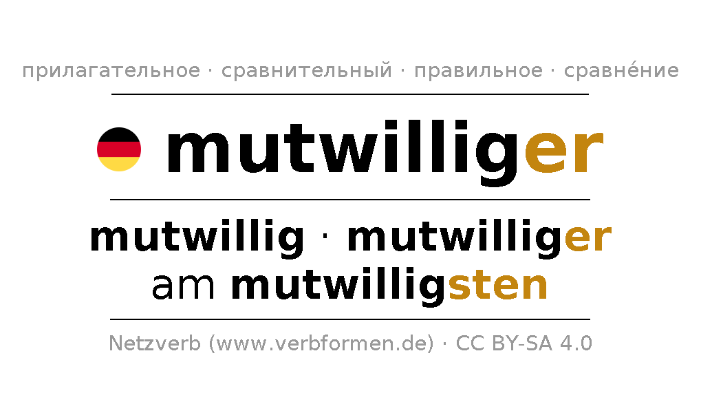 - Множественное число: mutwilligere, mutwilligerer, mutwilligeren, mutwilligere