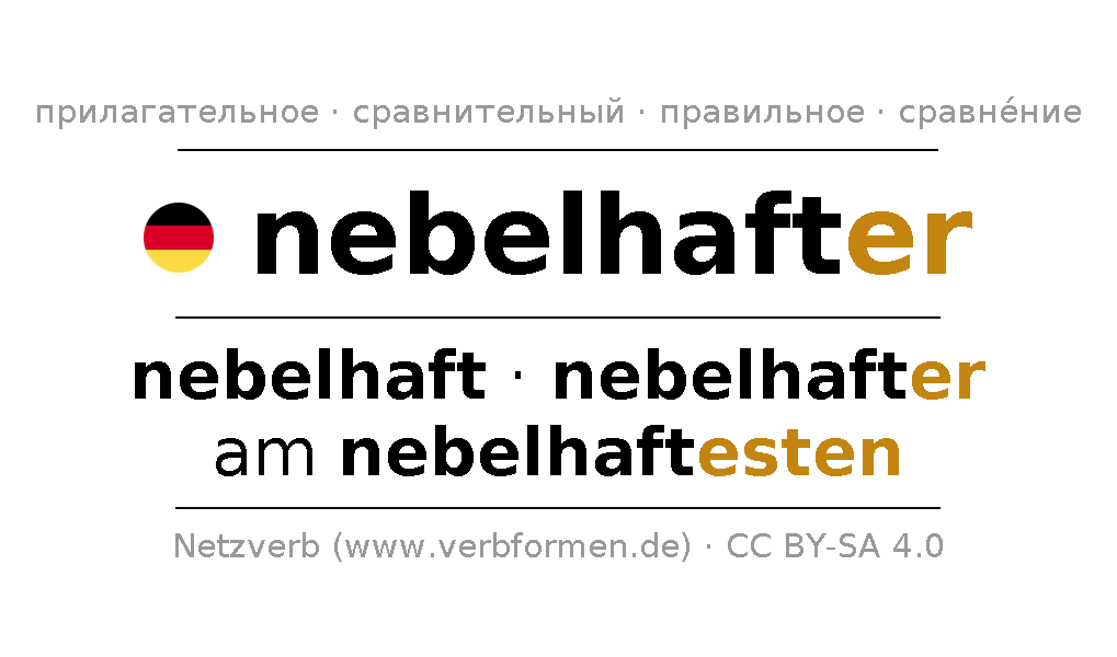 - Mужской род: nebelhafterer, nebelhafteren, nebelhafterem, nebelhafteren