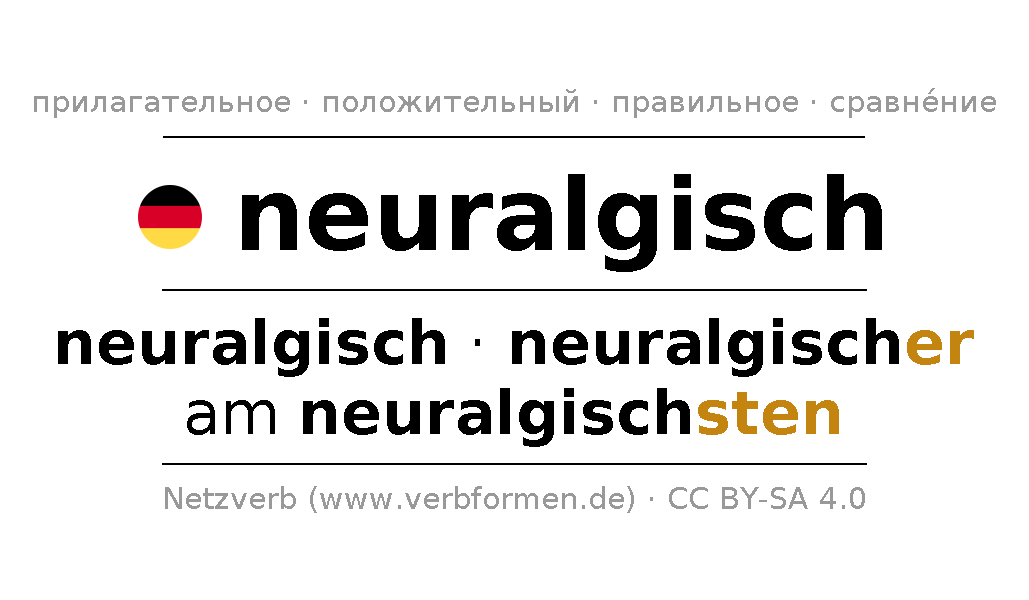 - Множественное число: neuralgische, neuralgischer, neuralgischen, neuralgische