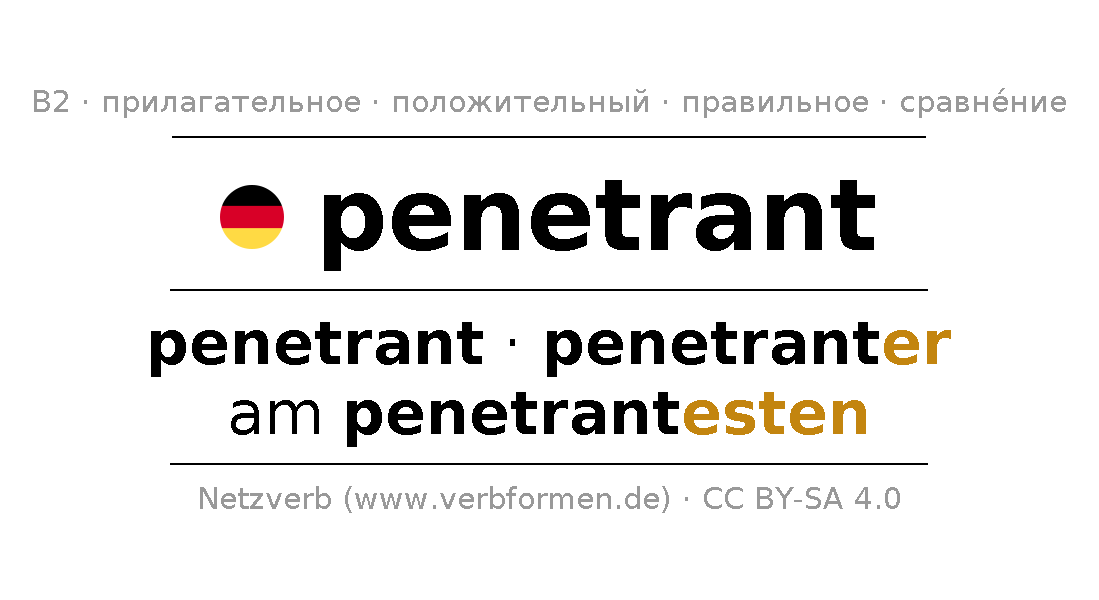 - Mужской род: ein penetranter, eines penetranten, einem penetranten, einen penetranten