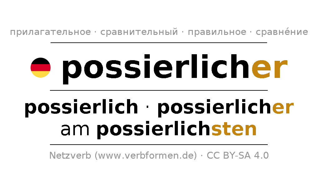 - Множественное число: possierlichere, possierlicherer, possierlicheren, possierlichere