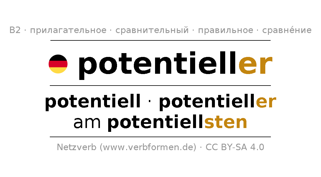 - Mужской род: der potentiellere, des potentielleren, dem potentielleren, den potentielleren