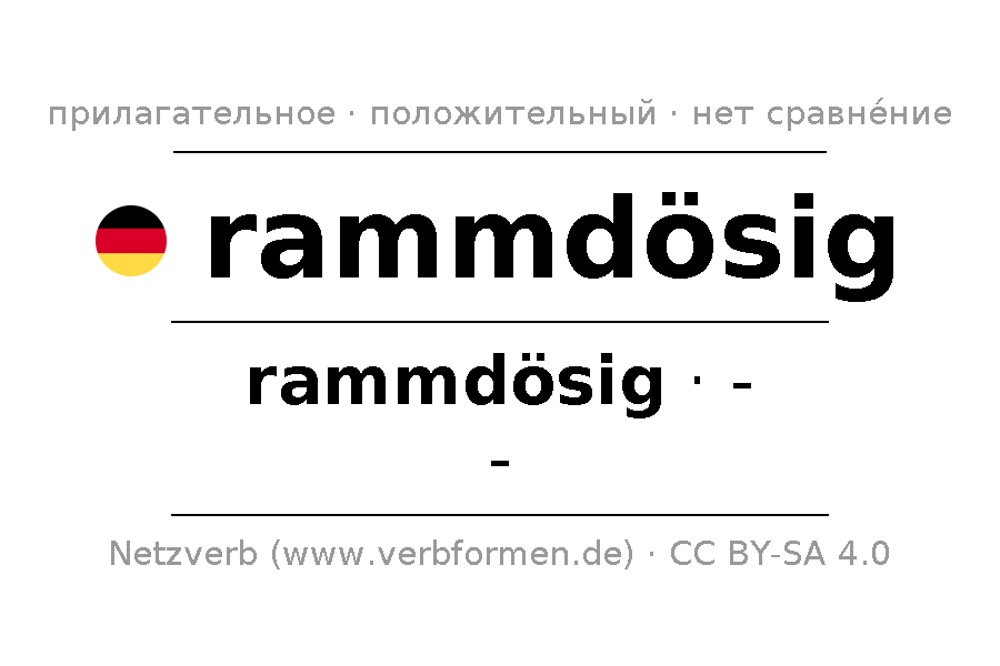 - Mужской род: der rammdösige, des rammdösigen, dem rammdösigen, den rammdösigen