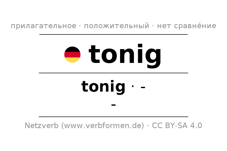 - Женский род: die tonige, der tonigen, der tonigen, die tonige