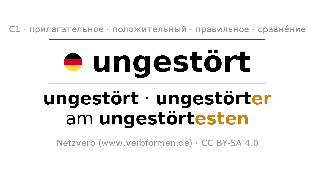 - Mужской род: ungestörter, ungestörten, ungestörtem, ungestörten