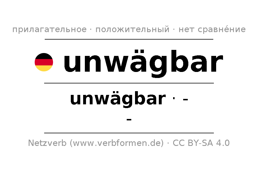 Прилагательное unwägbar (неизмеримый, неоценимый) склоняется в положительной степени сравнения unwägbar. Прилагательное не имеет сравнительной и превосходной степеней сравнения. Прилагательное unwägbar может употребляться как в качестве определения перед существительным (с артиклем и без него, в формах сильного, слабого и смешанного склонений), так и в качестве именной части сказуемого в сочетании с глаголом.Можно не только отразить и сравнить unwägbar, но и все немецкие прилагательные. Kомментарии ☆