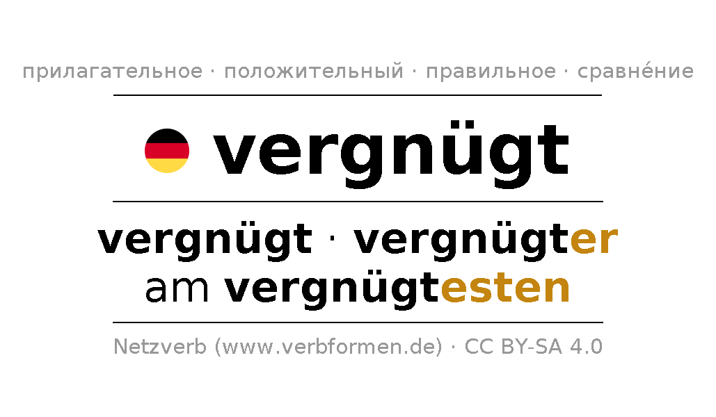 формы склонения и формы сравнения vergnügt