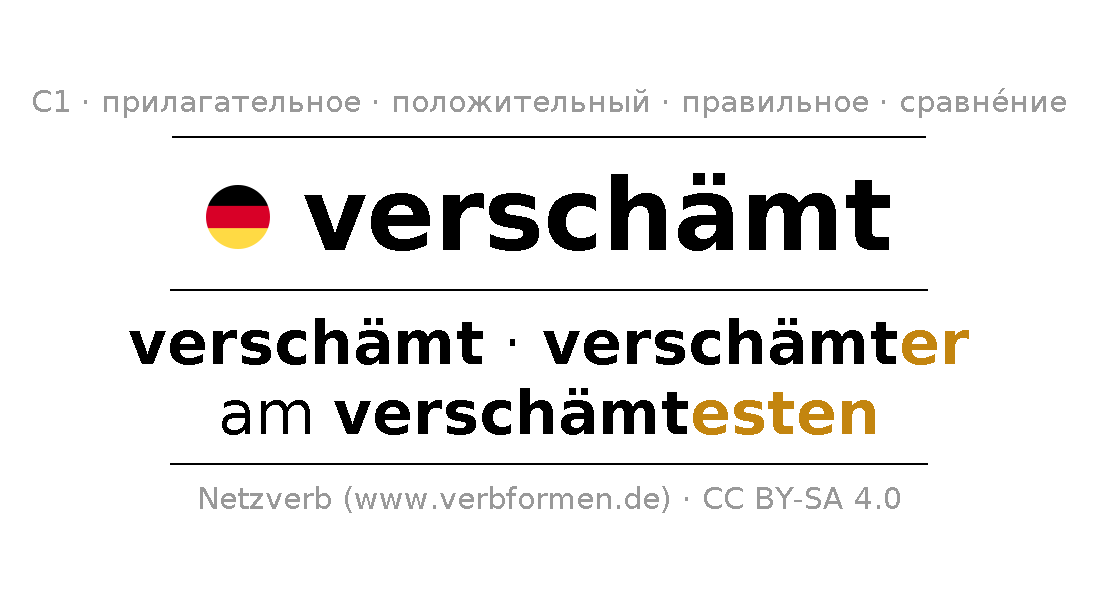 - Mужской род: verschämter, verschämten, verschämtem, verschämten