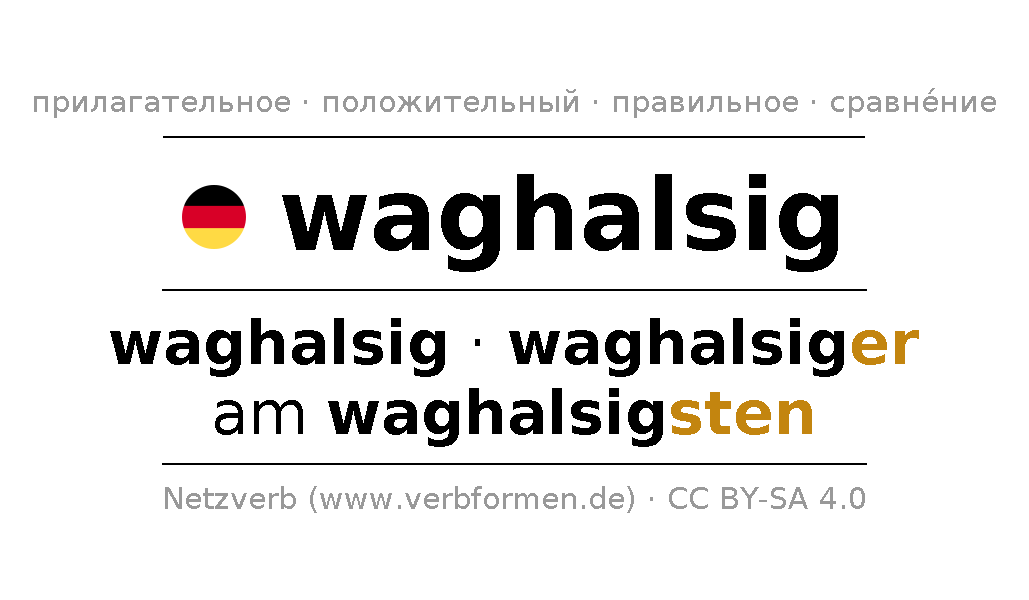 - Множественное число: waghalsige, waghalsiger, waghalsigen, waghalsige