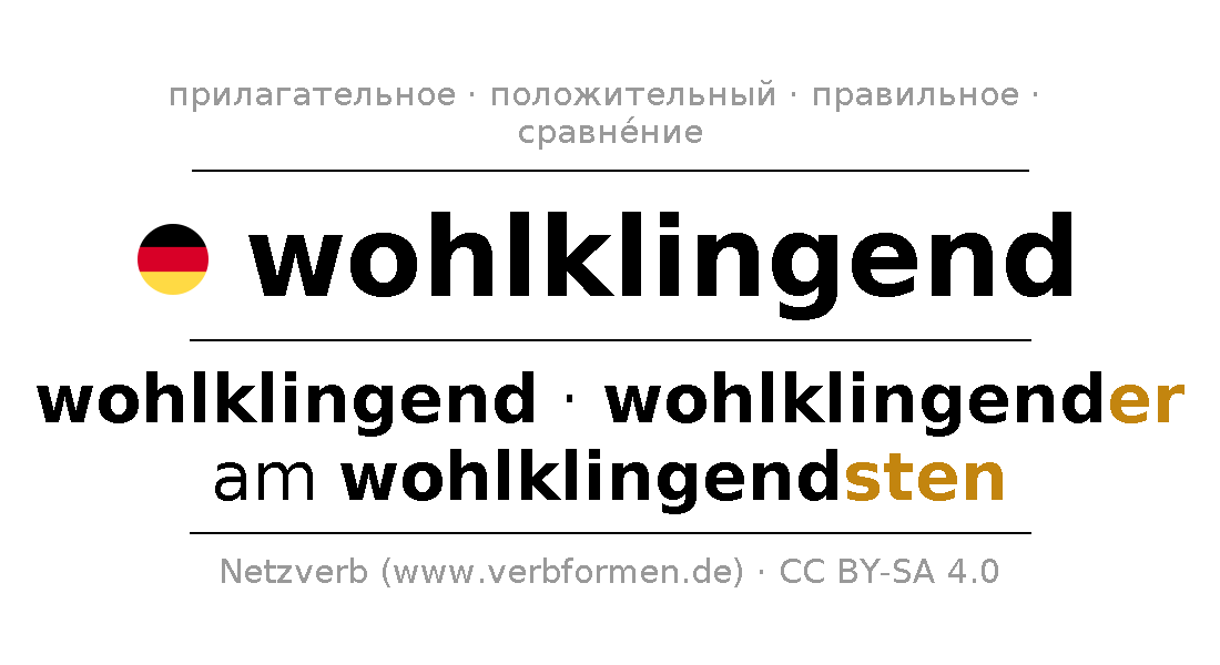 - Множественное число: wohlklingende, wohlklingender, wohlklingenden, wohlklingende