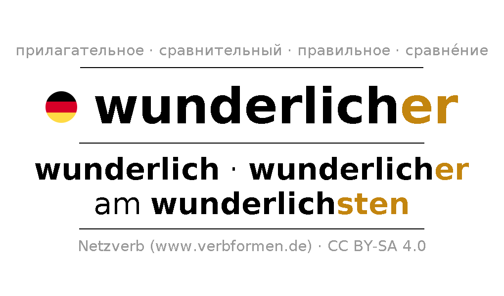 - Множественное число: die wunderlicheren, der wunderlicheren, den wunderlicheren, die wunderlicheren