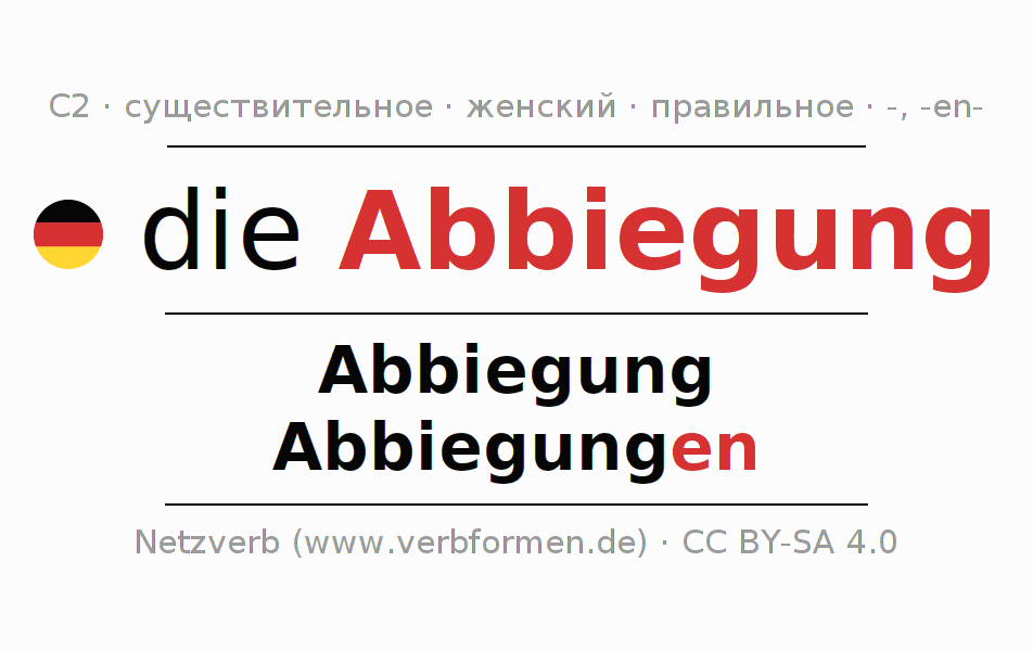 - Множественное число: die Abbiegungen, der Abbiegungen, den Abbiegungen, die Abbiegungen