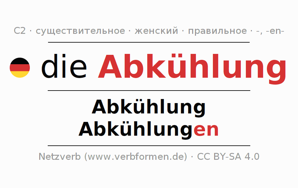 - Единственное число: die Abkühlung, der Abkühlung, der Abkühlung, die Abkühlung