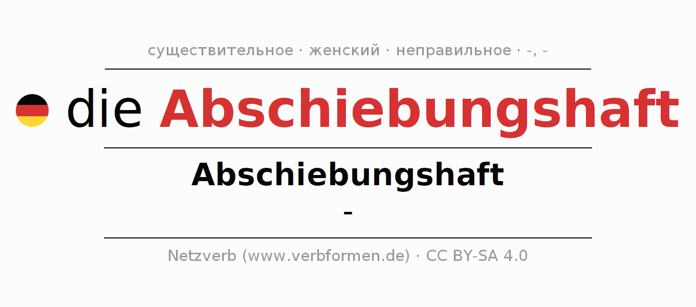 - Единственное число: die Abschiebungshaft, der Abschiebungshaft, der Abschiebungshaft, die Abschiebungshaft