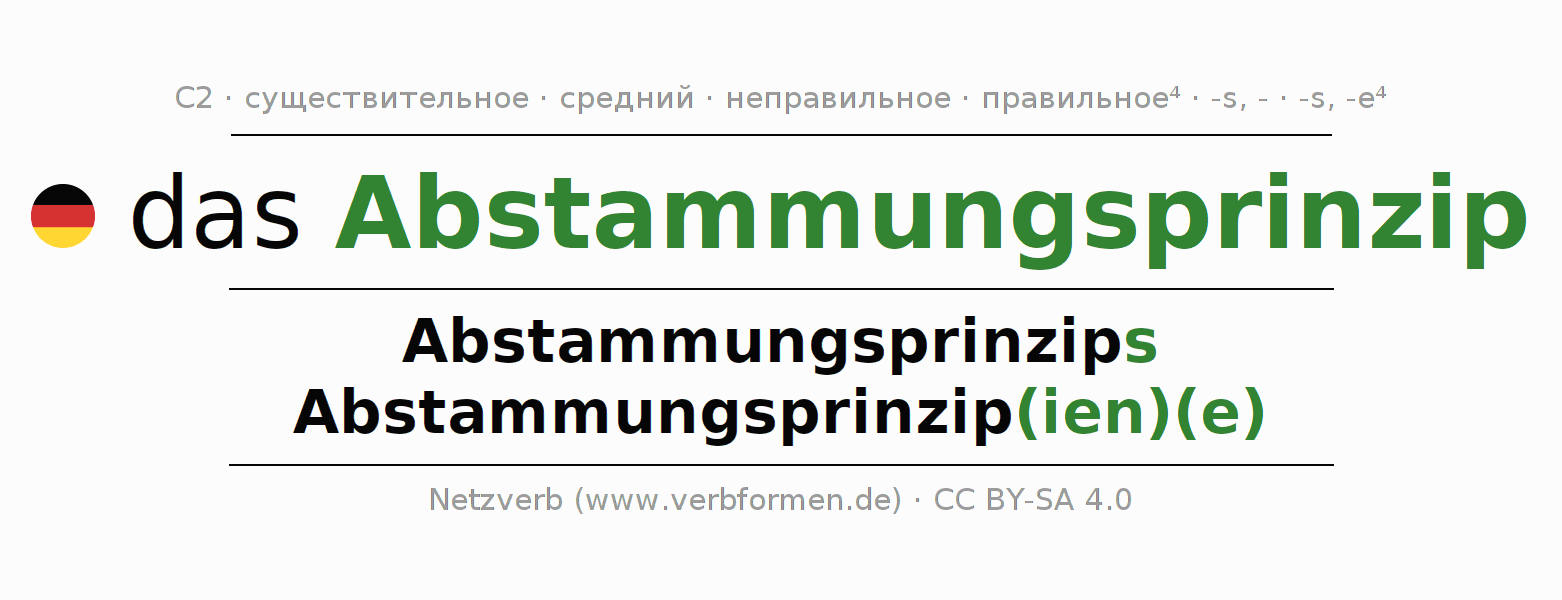 Pод. | des Abstammungsprinzips | der Abstammungsprinzip(ien)(e) |