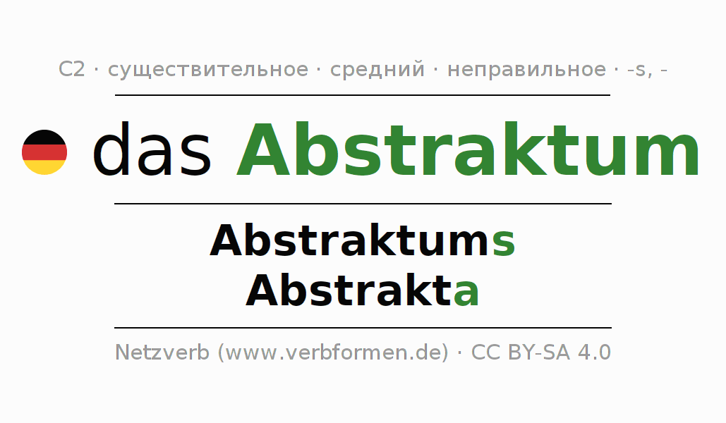 - Единственное число: das Abstraktum, des Abstraktums, dem Abstraktum, das Abstraktum
