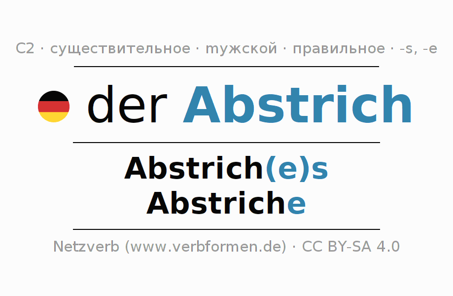 - Единственное число: der Abstrich, des Abstrich(e)s, dem Abstrich(e), den Abstrich