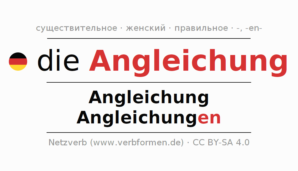 - Единственное число: die Angleichung, der Angleichung, der Angleichung, die Angleichung
