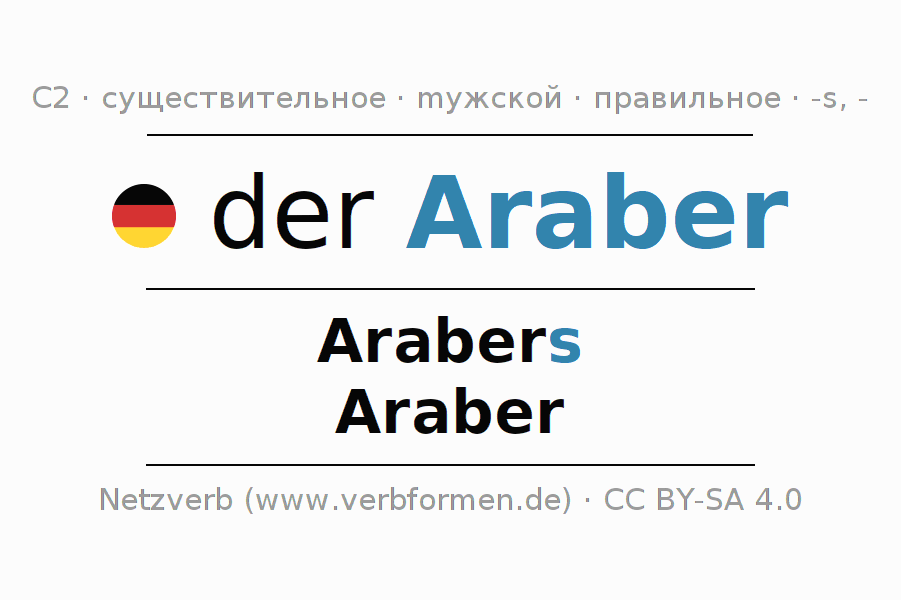 - Множественное число: die Araber, der Araber, den Arabern, die Araber