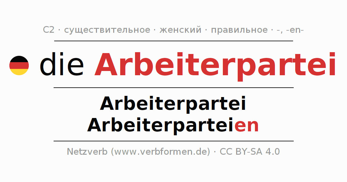 - Единственное число: die Arbeiterpartei, der Arbeiterpartei, der Arbeiterpartei, die Arbeiterpartei
