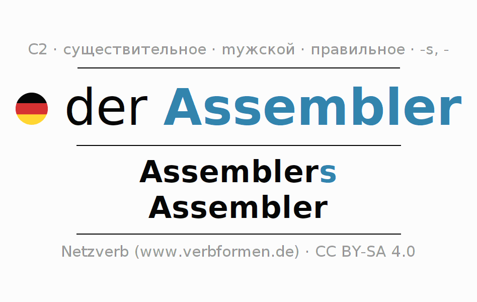 - Множественное число: die Assembler, der Assembler, den Assemblern, die Assembler