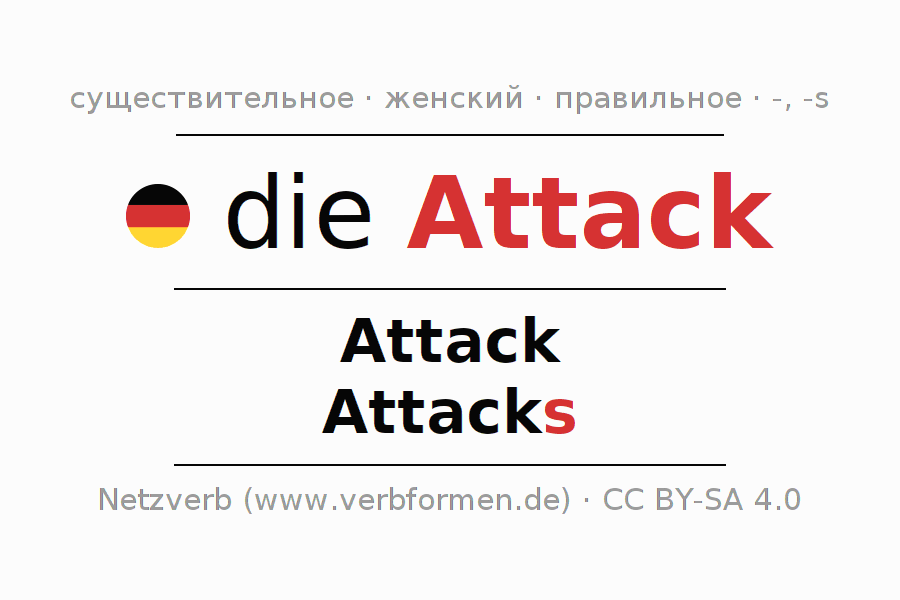 - Множественное число: die Attacks, der Attacks, den Attacks, die Attacks