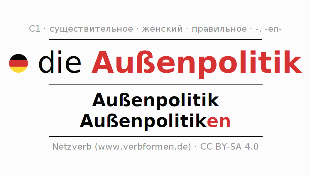 - Единственное число: die Außenpolitik, der Außenpolitik, der Außenpolitik, die Außenpolitik