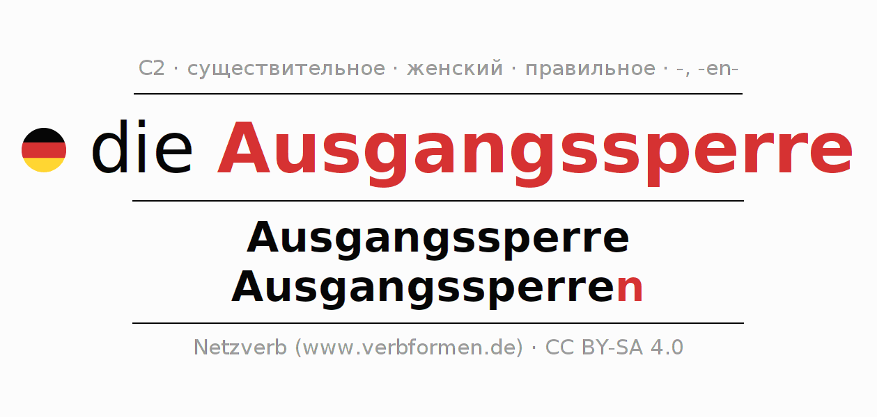 | Им. | die Ausgangssperre | die Ausgangssperren |