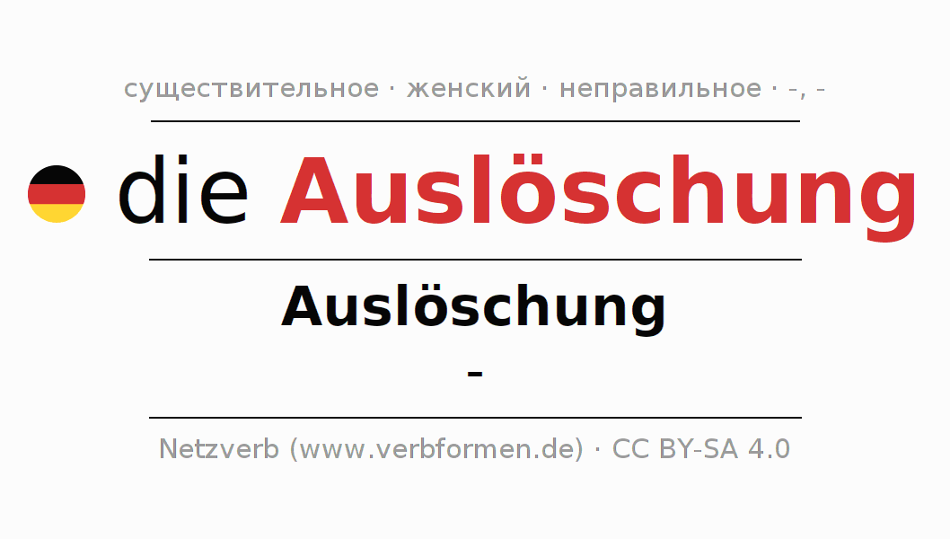 - Единственное число: die Auslöschung, der Auslöschung, der Auslöschung, die Auslöschung